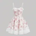 New Spaghetti Strap Floral Dress Pink Coquette