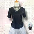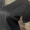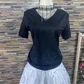 Note: Atasan V-neck hitam ini dirancang dengan potongan yang pas di badan untuk memberikan siluet yang ramping dan rapi. Produk masih baru dan masih terdapat tag label baju.
