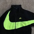 Nike big swoosh revisible jacket ON TAG L VERY GOOD CONDITION PxL : 120x65 2 warna hitam dan hijau stabilo Pengiriman kota tasikmalaya REVISIBLE JAKET Parasit sherpa