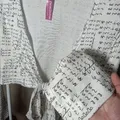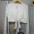 Outer kimono tali crop putih motif teks lengan panjang
