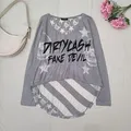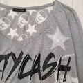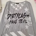 Atasan oversize berbahan kaos katun lembut terawang. Kesan dark y2k gothic, nyaman & edgy. Detail: Bust 108–110 cm Length 50–73 cm Sleeve circumference 44 cm Sleeve length 63 cm Soft sheer cotton Brand Mao Wao