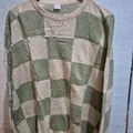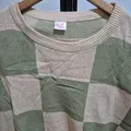 Oversized sweater rajut motif kotak warna sage & cream.