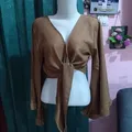 P196 Kardigan/ Outer crop tangan terompet wana coklat Tali bagian depan Ld 100 Pb 45 B 150 30k