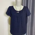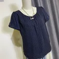 (Cute navy blouse with white tiny polkadot pattern🤏🏻 model balon bagian bawah dan lengannya. Simple but make it cute🤍)