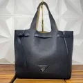 Prada Flou Dynamique Belted Leather Tote Bag Black hitam