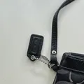 Preloved Coach Black Signature Wristlet Clutch Purse Monogram Fabric Black Patent Leather . Kondisi seperti di foto , mulus tidak ada yang terkelupas , tidak ada karat , zipper aman . Harga nego dikit , oyen/ijo admin di tanggung pembeli