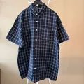 Preloved Kemeja Pria Lengan Pendek Plaid Navy Shirt