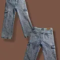 Jual celana jeans Pull & Bear preloved dengan gaya vintage. Potongan straight-leg yang lebar dan acid wash unik, dilengkapi saku kargo fungsional. ✨