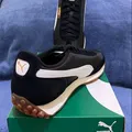PUMA EASY RIDER BLACK/WHITE GUM BNIB Resmi PT. Puma Cat Indonesia 69% Kulit, 31% Tekstil Size : - 42.5 / 8.5 (27.5cm) - 43 / 9 (28cm) - 44 / 9.5 (28.5cm) 100% Original or not money back.