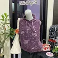 Purple Skull Knit Hoodie Vest Y2k unisex