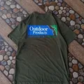 READY, This is an Outdoor Products olive green t-shirt with a graphic logo and the words "California U.S.A EST. 1973" on the back. (Warna masih pekat difoto hanya faktor hp dan kondisi cahaya)