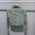 Retro jeans crop ripped Ld 80-85cm Panjang 49cm Size XS Bahan lumayan tebel warna retro ada detail ripped di bagian depan dada dan belakang banyak noda samar perlu di cucii ajaa yaw