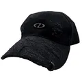 Reude Rugged Denim Distressed Black Cap (Hat Topi) Sterling Silver Piercing ALL SIZE adjustable velcro 925 sterling silver piercing untarnished metal emblem manually distressed denim with unique rips and patterns