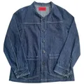Reworked blue indigo open collar jacket