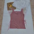 ruffle tille sleeve top / pink top / tank top pink