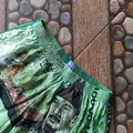 runner-style shorts with a South Korean 10,000 won banknote
