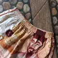 runner-style shorts with a South Korean 5,000 won banknote m