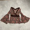 •size : M Panjang : 54cm Lingkar : 94cm -detail : Item 95%, tidak ada minus , slide ke3 try on , materian catton lembut, adem ,bagian tangan flare , japaanese brand 2000an *model memakai AI sbg referensi outfit item*