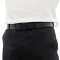 Black genuine leather two holes belt with white embossed at ending tip