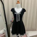 Sailor Dress hitam dengan pita putih