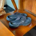 This On-The-Go sandal features a textile upper, contoured Goga Mat® footbed, and supportive Hyper Pillar Technology™