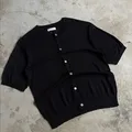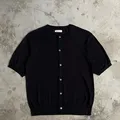 Scent oversize round collar full button knit short sleeve shirt