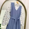 Dress Motif Bunga Floral Koran Style Gamis πΈπ° Tampil anggun, unik, Baru Beli belum dipakai sama sekali, Warna:Biru Denim dan super stylish dalam satu outfit.