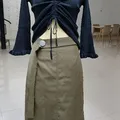 Bahan atasan rajut rib melar, bagian dada bisa diserut kayak di foto yaa, bagian rok bahan ngepas jadi gak melar, ada belahannya, dan bagian Bawahan ada furing yaa, cocok banget buat daily atau hang out