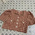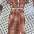 Setelan kotak kotak merah putih