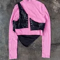 Shein pink knit with leather vest top