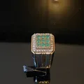 Cincin perak square Batu emerald 9 pcs and zircon Certified