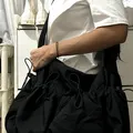 bahan nilon tebal. inner satin. satu ruang utama. satu ruang laptop. dua poket kiri kanan. dua poket depan. tali bisa diadjust. dimensi 45x50cm. muat laptop 14inci. detail lihat gambar.
