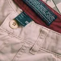 Pop of Red Detail: Ada sentuhan warna merah di bagian pinggang dalam dan label saku.