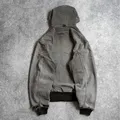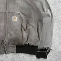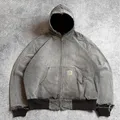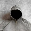 Heavily sun faded black tones create an authentic vintage look, with duck canvas showing natural abrasion and fraying from long term wear. The classic active jacket silhouette with hood, full zipper, and front pocket stays functional and timeless.