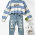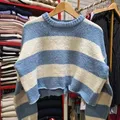 Sweater Crop Baby Blue Oversize Wanita