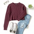 Sweater Crop Uniqlo Kepang timbul Wanita