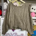 kondisi 95% masih cakep kaya baru . hasil buka bola sortir . bahan rajut enak pake tidak gatel or gremet . lengan ngebalon . tangan ciut . warna coklatnya cakep . dipake kaya kurang bagus ya ka . soalnya harusnya ada tali ka dibagian perut . ada tempat biat tali kiri kanan . jd ngebentuk . cm ak ga dapet talinya . mgkn klo ld besar yg pake pas ya . mines dibagian dalem atas klo dipegang tu agak brudul dikit ya bekas tempelan ld ku . jual apa adanya .