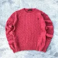 Sweater Ralph Lauren Cableknit Rajut Full Kepang Red Coral