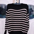 Sweater rajut motif garis hitam-putih yang timeless dan super nyaman dipakai 🤍🖤 Bahannya lembut, hangat, dan jatuh di badan — cocok banget buat kamu yang suka gaya simple tapi tetap chic!