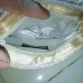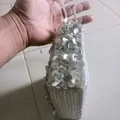 kondisi aman 70%,minus sedikit menguning di bagian puring dalam,tapi tdak terlihat dan pengaruh fungsi,material kain dibalut dengan Payet Payet mewah,Payet belum ada yg lepas,1 ruang penyimpanan berjiper,tidak masuk hp,warna silver masih oke.
