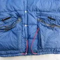 The Original Holubar USA Colorado Deep Powder Down Bulang Jacket \nRoyal Blue Colour Way \nSize L \nPxL 87 x 61 \n\nInspired by a classic from the 70s, the men's Deep Powder Jacket M.S from Holubar for men can be worn as a vest thanks to its removable sleeves!\n\nIt has two patch pockets with flaps, a removable hood and a zipper with a snap flap. Its polyester lining makes it waterproof and very flexible. It is filled with down and feathers to provide volume and warmth.\nFeatures:\n- Full zip cl