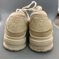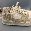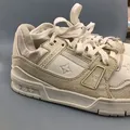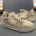 The Original Louis Vuitton Lv Trainner Sneaker Size 41 eur 7uk Shoes sneakers all off white basic colorway Insole 26 cm Made in Italy Bnwt Brand new with tag This edition of the LV Trainer sneaker combines Monogram denim with Monogram grained calf leather. The juxtaposition of two colors and two materials highlights the elaborately constructed upper of this cult sneaker, which was originally designed by Virgil Abloh. It is complemented by rubber LV Initials and Vuitton signatures Beige Monogram