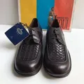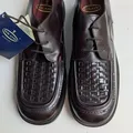 The Original Solatio 107s Cherry Norwegian Boxtops Basketweave in the vamp Bnib Brand New In Box Size 10 44 eur 28 cm Made in Italy THE 107 BOXTOP The suedehead favourite The original Solatio 107 Boxtop style is a re-run of the loud and con dent 1971 favourite of the suedehead subculture in the UK. The rolled front seam with distinct gimped edge frames the distinctive hand woven apron which has real eye appeal. The strong last shape is vintage seventies with a slight bump toe and squared pro le.