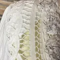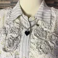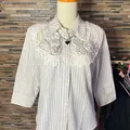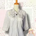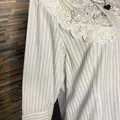 Note: Perpaduan motif garis minimalis dengan aksen renda jaring bordir yang mewah pada bagian dada. Model lengan 3/4, padding (bantalan busa) di bagian pundak, dan bahan cotton 100%.