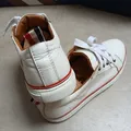 With infamous red white blue tag on the back heels