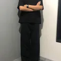 Three quarter black loose denim jeans