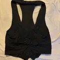 Thrifted these never worn by me Black vest with cute crystal like buttons and adjustable back, last pic as an inspo Bust: 90-104cm Length: 50-55cm 10/10 condi no minus