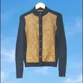 TOMMY HILFIGER Cardigan Panel Kulit Size S Panjang 67 cm Lebar 45 cm Pundak 43 cm Tangan 66 cm Material Wol,Nilon, Poliester Warna Navy