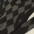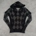 Rare piece dari seri Hilfiger Denim Heritage Collection, perpaduan antara preppy knit dan streetwear hoodie. Motif argyle klasik warna abu–hitam, bahan halus kombinasi cotton & cashmere.