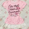 Top babypink fullprint gliter babytee cute vintage babydoll